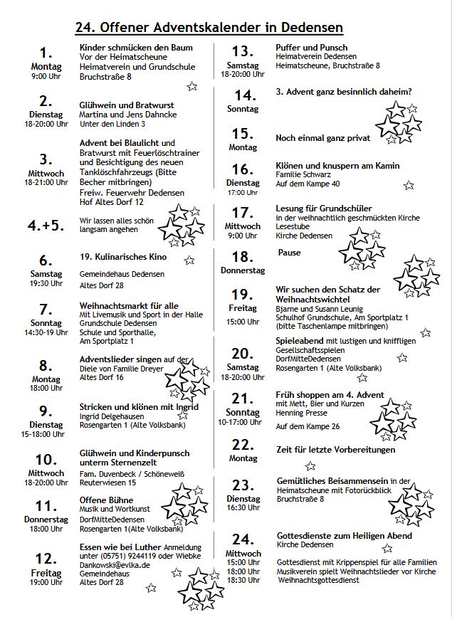 Aktuell: Der "Offene Adventskalender 2025". Initiert vom Heimatverein Dedensen.